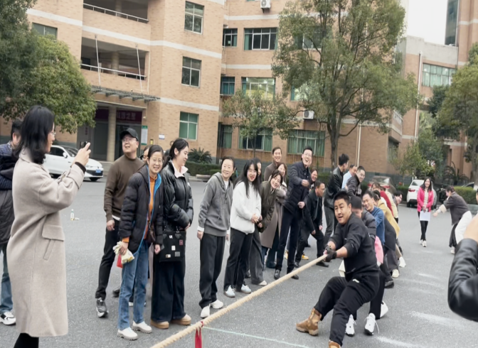 赛场上,各参赛队伍的教职工们精神抖擞、斗志昂扬。随着哨声响起,大家紧握长绳,身体后倾,齐心协力奋力拉扯。队员们口中喊着整齐划一的口号,脸庞上满是拼搏的坚毅;赛场边,各院系的啦啦队热情高涨,呐喊声、助威声、欢呼声此起彼伏,将比赛的热烈氛围一次次推向高潮。